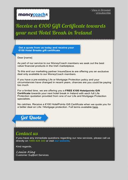 - To generate enquiries and customers for Moneycoach's Life Insurance and Mortgage Protection Products.